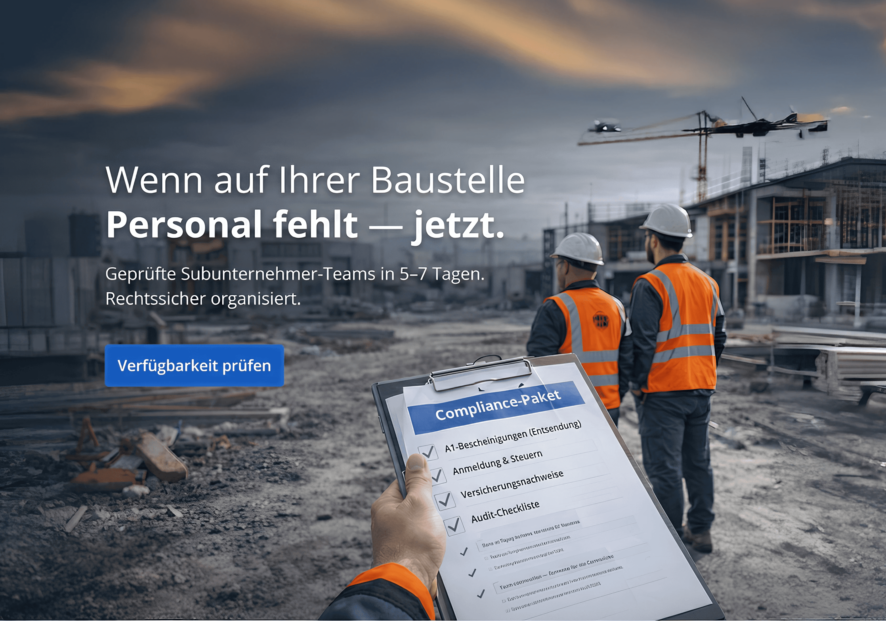 Seit 5+ Jahren unterstützt Bausbau Bauunternehmen in Deutschland bei Engpässen und kritischen Projektphasen.Wir helfen dort, wo Zeit, Qualität und saubere Ausführung entscheidend sind – mit strukturierten Einsätzen und klarer Verantwortung.